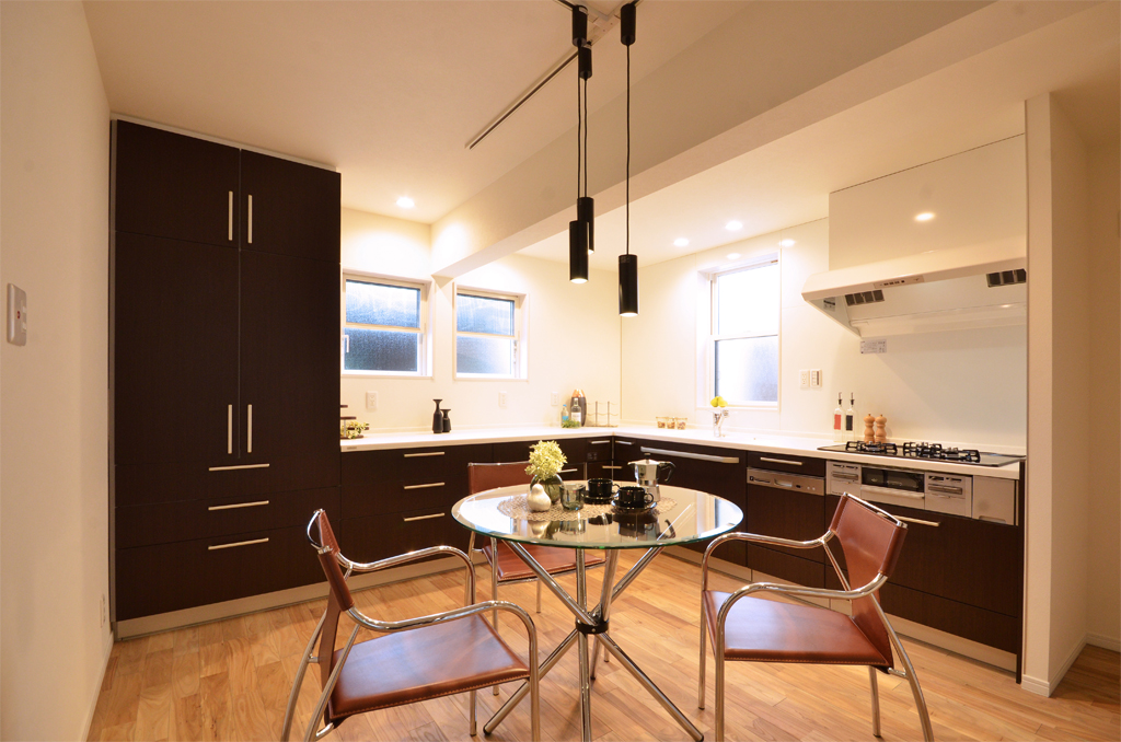 ダイニングテーブルをキッチンにあわせ造作するなど